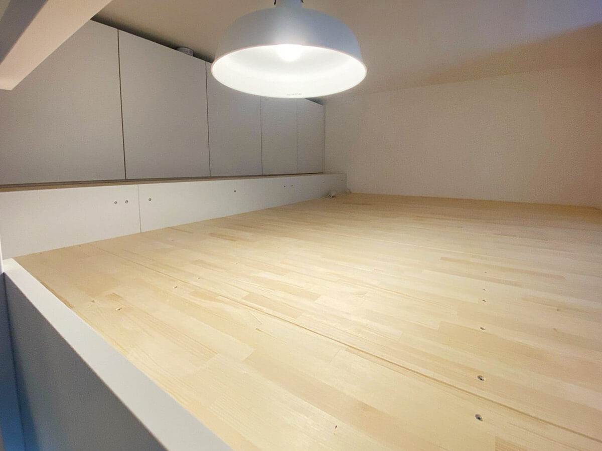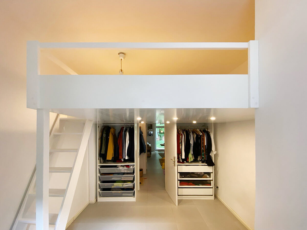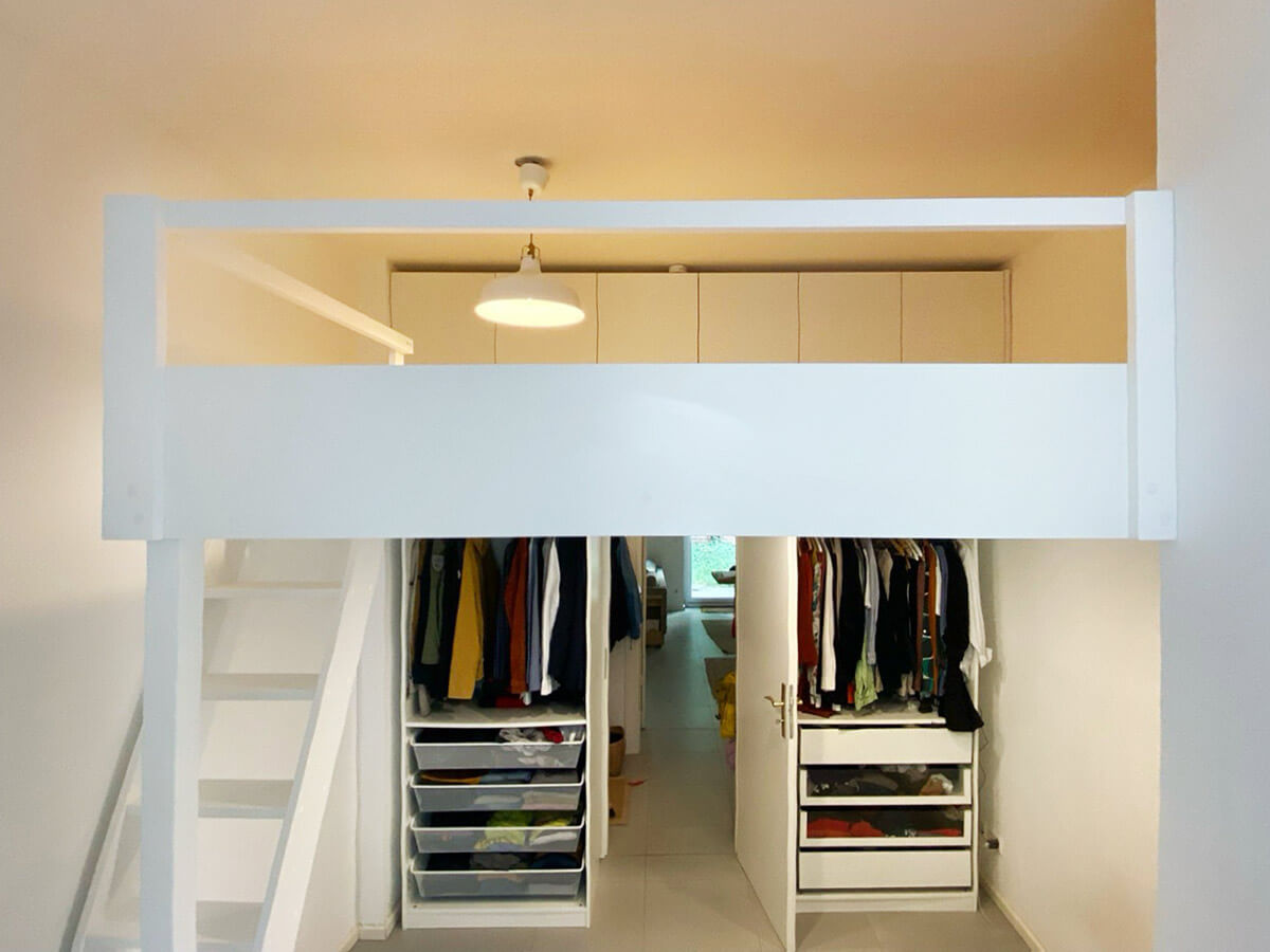 Den Platz unter unseren Hochetagen können wir Ihnen mittels Einhausung auch als begehbaren Kleiderschrank gestalten.