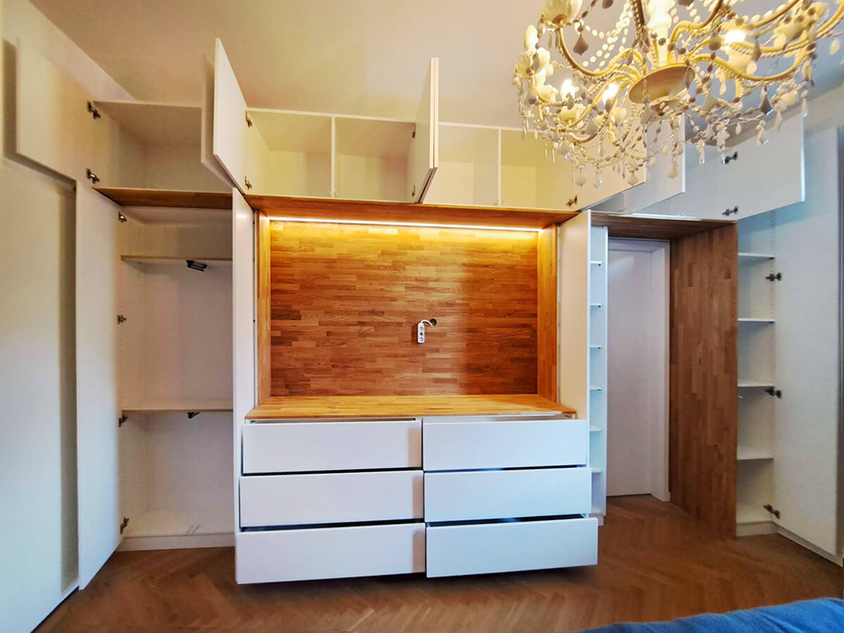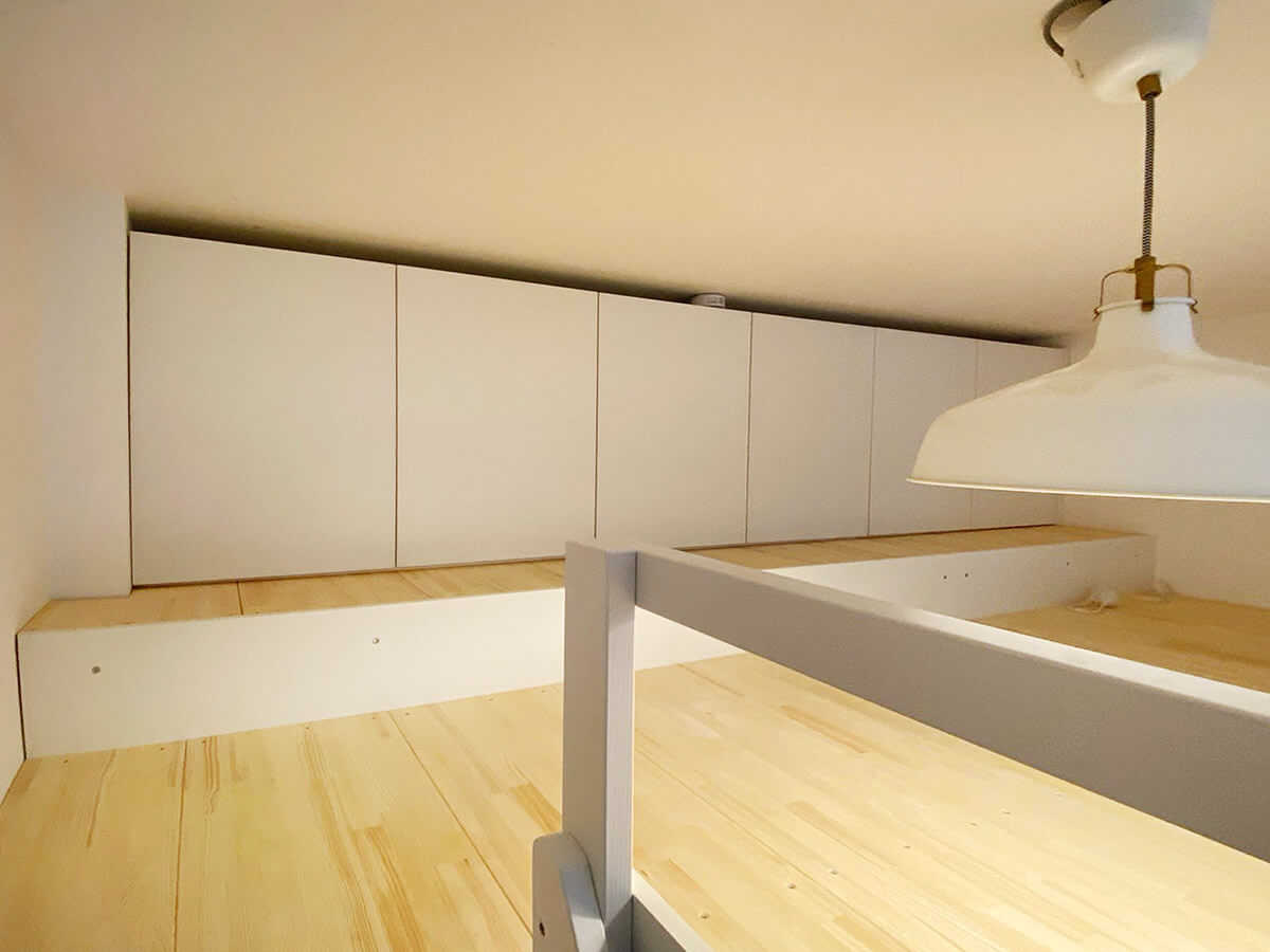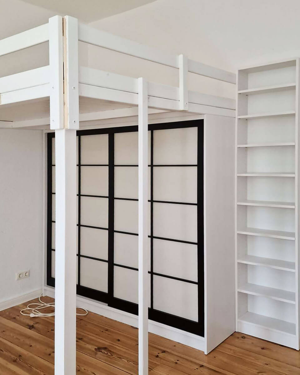 Den Platz unter unseren Hochetagen können wir Ihnen mittels Einhausung auch als begehbaren Kleiderschrank gestalten.